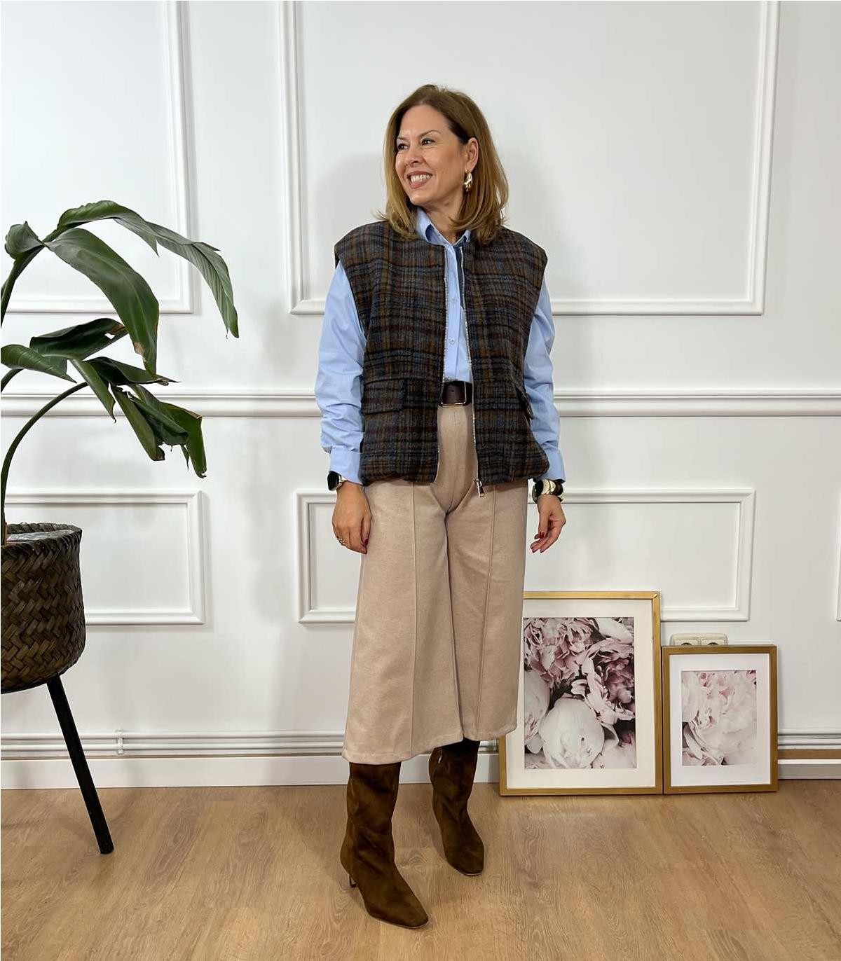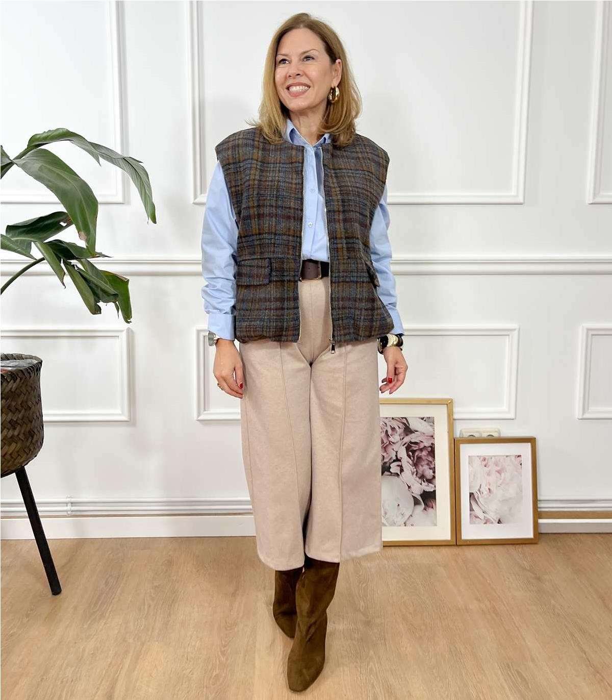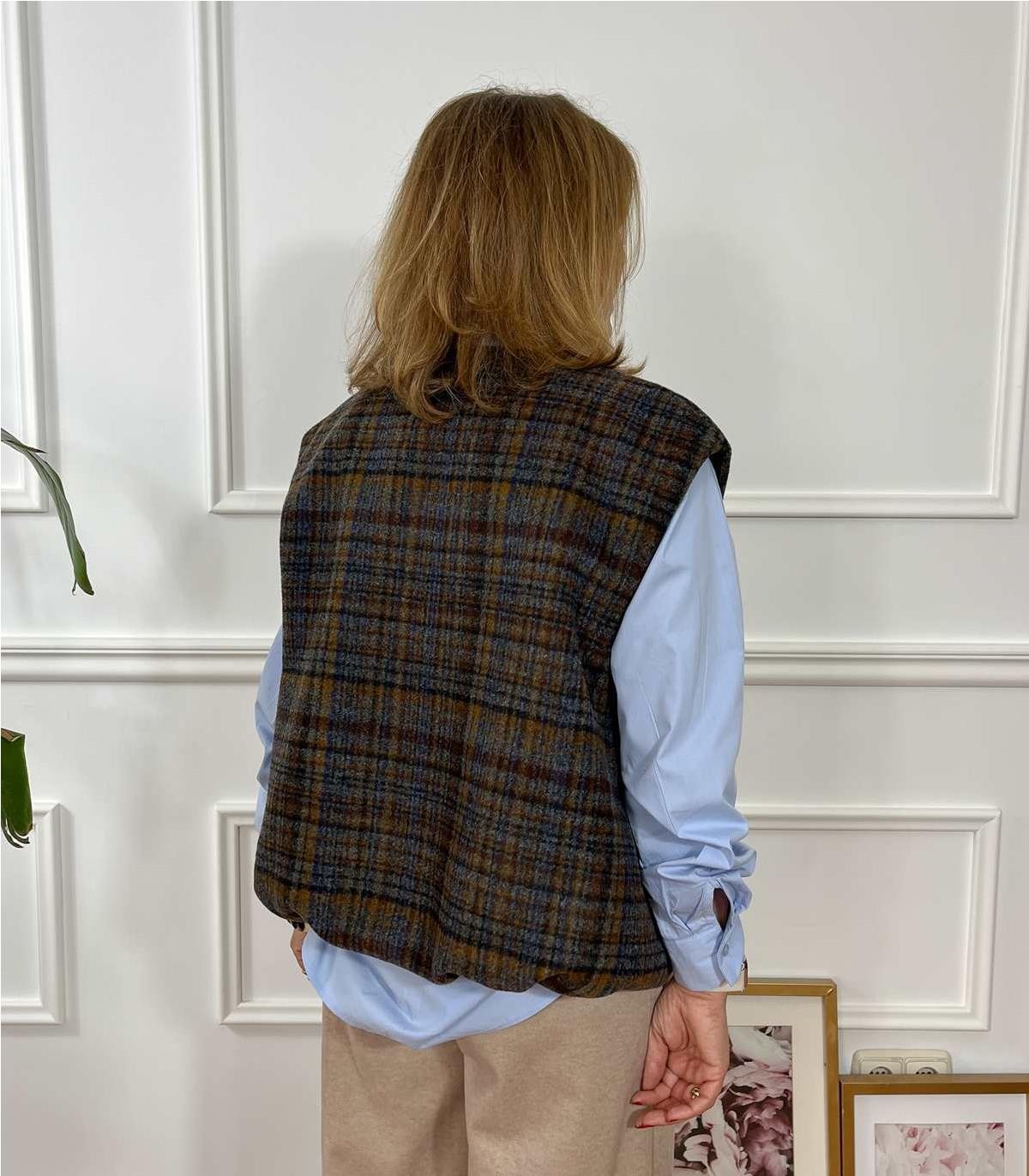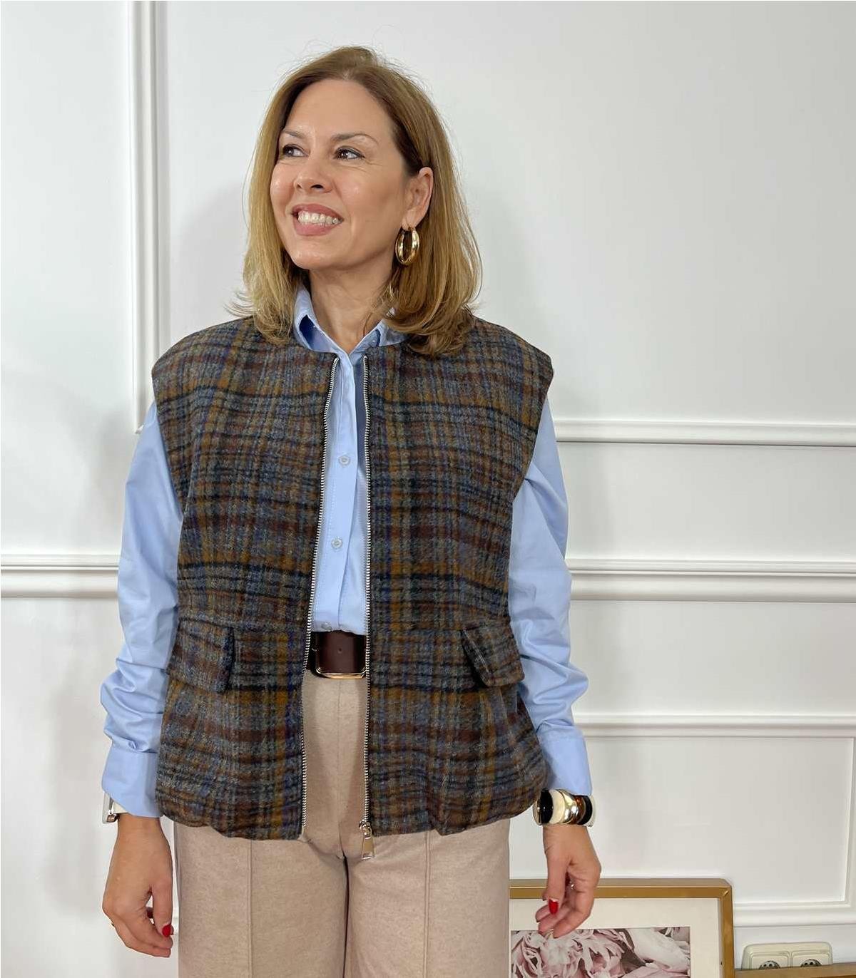 Chaleco oversize, cremallera central y bolsillos simulados, forrado y algo fruncido en el bajo. Favorecedor en look casuales