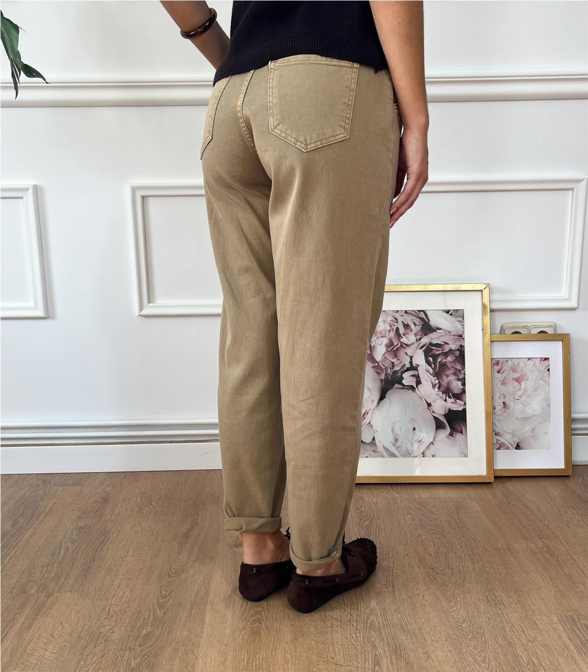 Jeans bombacho con pinzas. Gisela lleva talla S