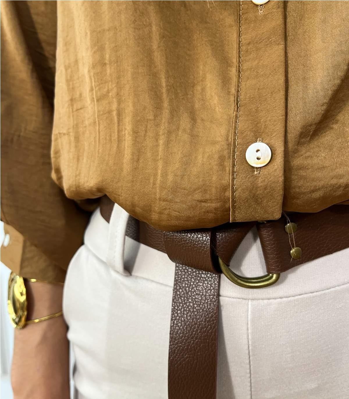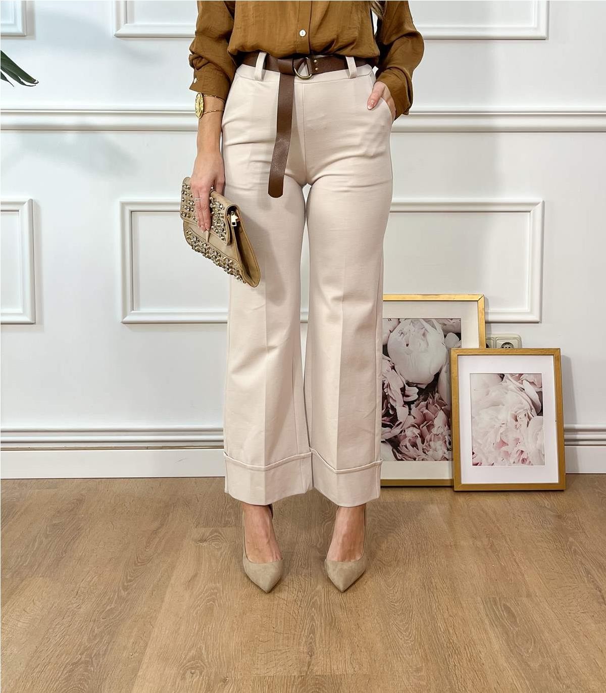 Pantalon con bolsillo y cinturon con goma en la cintura, tejido punto roma.